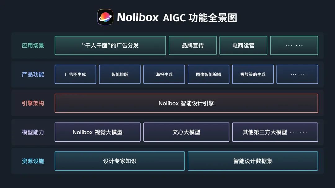 近期,AIGC 先锋企业「Nolibox 计算美学」完成数千万元 A 轮融资。本轮融资由业内数家头部机构支持,尖晶资本、GRIP Capital 等机构跟投。本轮融资资金将用于 AIGC 技术研发、市场开拓等方面,进一步深化 AIGC 技术与电商、营销等应用场景的落地与结合。Nolibox 是聚焦于「人工智能」和「设计创意」交叉领域的科技公司,致力于为个人及企业提供高品质智能设计及 AIGC 服务,让每个人都能享受设计和创意之美。在文生图大模型大火之前,Nolibox 就已经在「高品质的 AI 平面设计生成」领域有了不少积累,比如:一键海报生成、自适应布局、多尺寸延展、智能文案、响应式的智能编辑、根据参考图生成同风格同调性且可编辑的平面设计、设计元语言等技术储备。Nolibox 有能力对企业提供图像 AIGC 全链路解决方案,也是国内最早实现以 AIGC 图像生成能力服务垂直行业的公司之一,已完成深度合成算法备案,在安全合规的基础上,为客户及用户提供高品质、可商用、低门槛、行业领先的 AIGC 图像生成企业级解决方案。2023 年,Nolibox 在电商和营销场景实现了商业化,已获多个世界 500 强付费客户,在 AIGC 电商+广告投放物料生成、AIGC 品牌营销及流量运营等领域积累了深厚的行业 know-how 及技术服务能力,入选多个知名的 AIGC 行业榜单;已为多家国际知名美妆个护集团、中国农业银行、海尔智家、1688 等头部客户提供了AIGC 服务及 AIGC 解决方案建设。