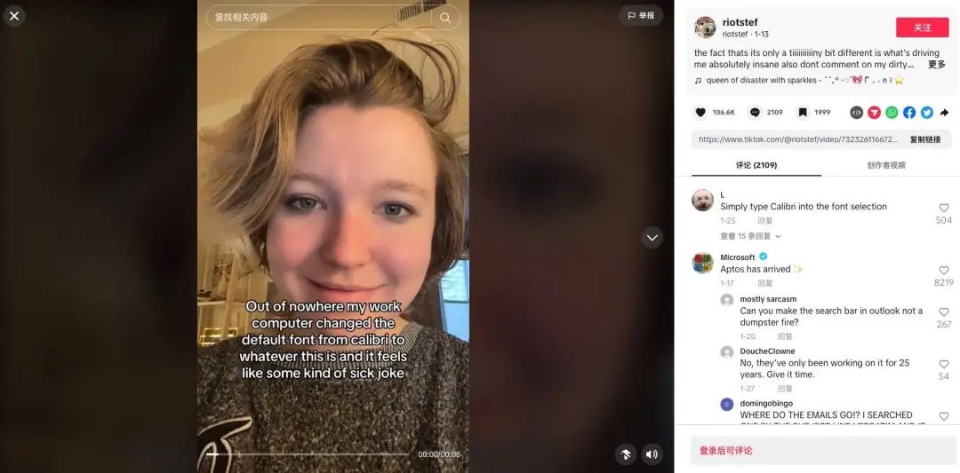 @riotstef:毫无征兆地,我工作电脑上的默认字体从 calibri 变成了这个鬼东西,感觉就像某种恶心的玩笑。@slushgobblin:这事也发生在我的 Outlook 上,直接引发了一场职业身份危机。