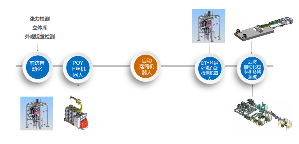 作为国家高新技术企业、江苏省创新型中小企业,澳钍智能已拥有60余项专利及软件著作权,参与多项化纤机械智能化行业标准的研讨与制定。其产品覆盖化纤生产后纺段全流程(POY上丝、DTY落筒、外观检测、自动装车等),成为国内少数能提供化纤机械智能化整体解决方案的企业之一。