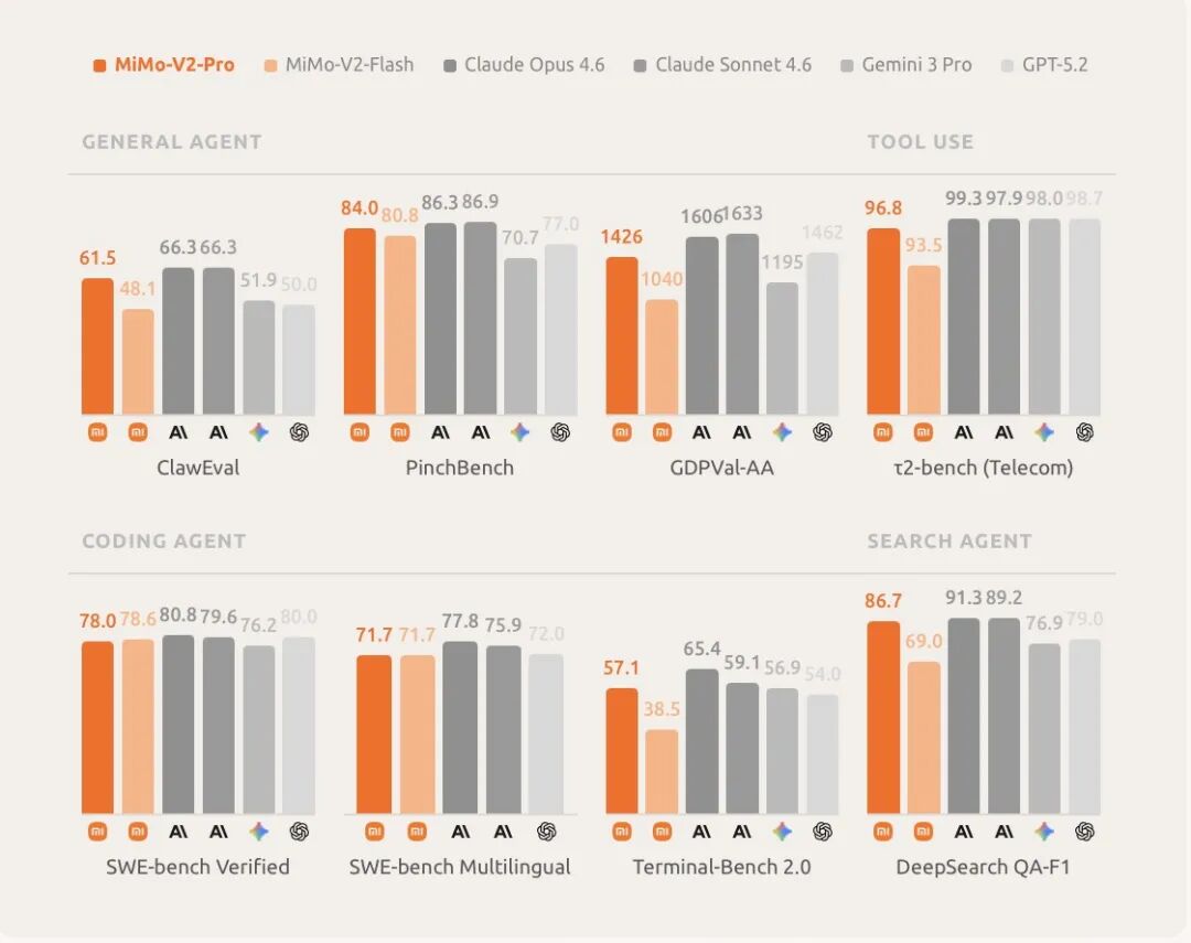 MiMo-V2-Pro 在不同“Agent能力测试”中的表现