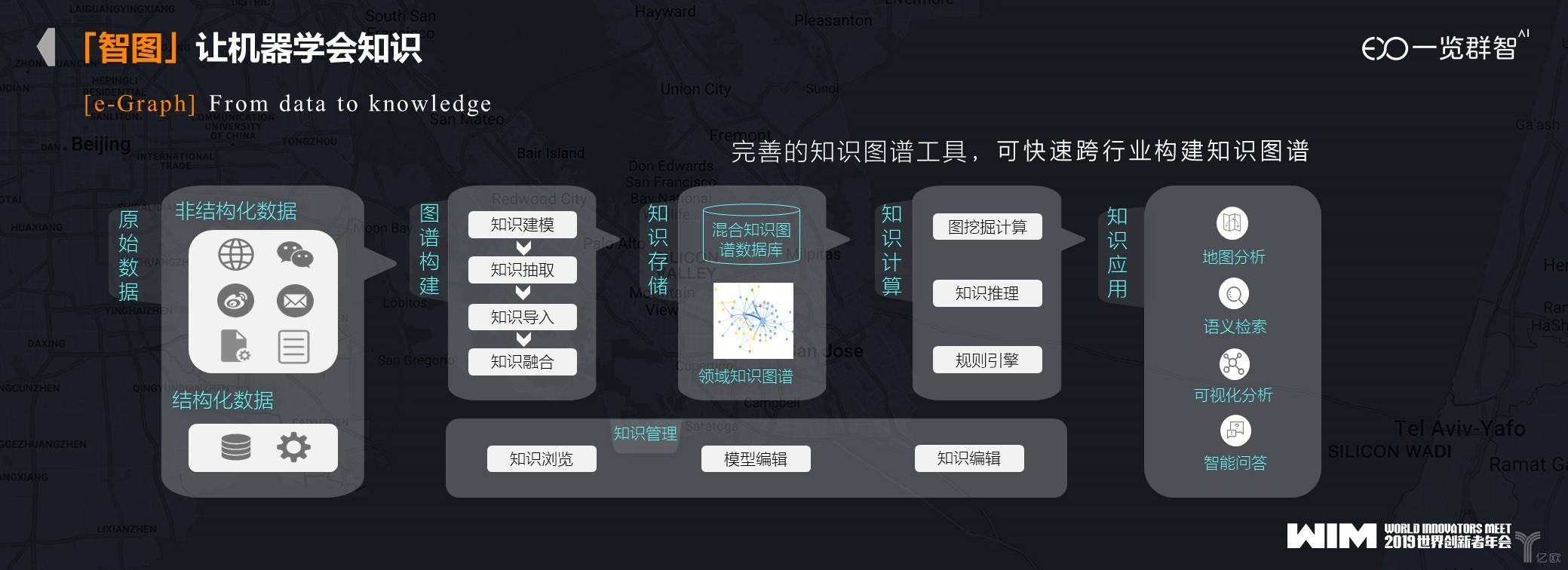 基于结构化的数据,构建人、地、事物、组织之间的关系知识图谱,提供人机交互的可视化分析引擎,让知识与人直接衔接,最终与行业场景衔接打造行业决策引擎。一览群智平台内置了大量已经做好的领域模型,还支持一些迁移学习功能,最终价值是快速进行领域自定义,让普通程序员也能使用。