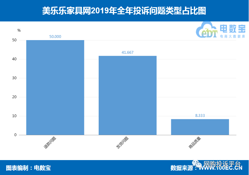 导读:近日,网经社通过对“美乐乐家具网”2019年全年真实用户投诉案例大数据分析,公布了“2019年美乐乐家具网消费评级数据”、年度投诉数据及典型案例。