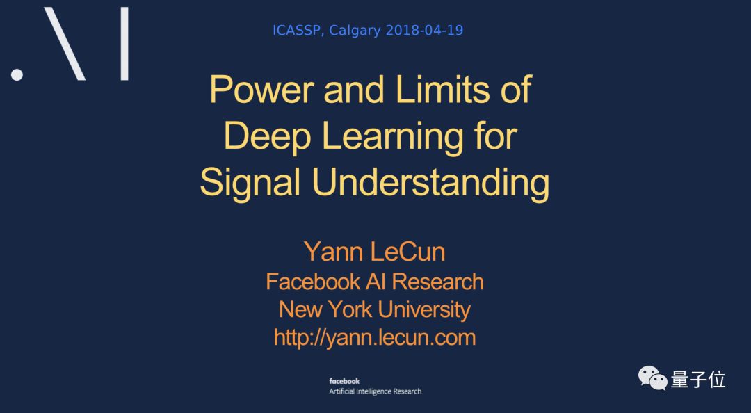 4月19日,LeCun在ICASSP(国际声学、语音与信号处理会议,信号处理及应用领域的顶级会议)上发表了一次演讲。