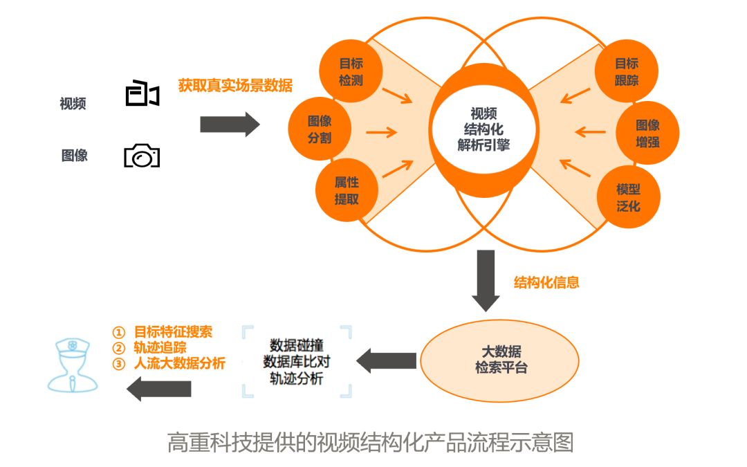 「高重科技」创立于 2014 年,是一家以安防为应用场景的人工智能公司,公司成立至今,已拥有国内外多名人工智能行业科学家。以这些科学家主导,基于 AI 技术设计出了“天眼”视角下跨监控设备轨迹追踪安防产品——UltraVision,能够完成目标(人、车、物)多维度综合特征的高精度识别,提供目标特征搜索、轨迹追踪、人流大数据分析等功能,实现了事前预警、事中监控、事后追溯等功能。