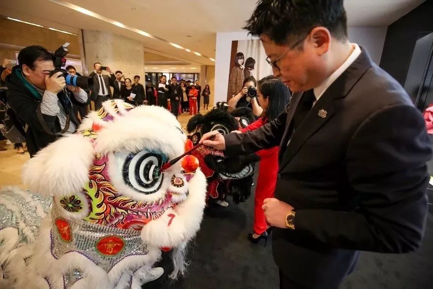 上图:KOLON SPORT董事长梁夏凖先生为舞狮点睛