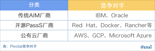 Pivotal业务基本在企业级aPaaS领域,其竞争对手主要有以下几类: