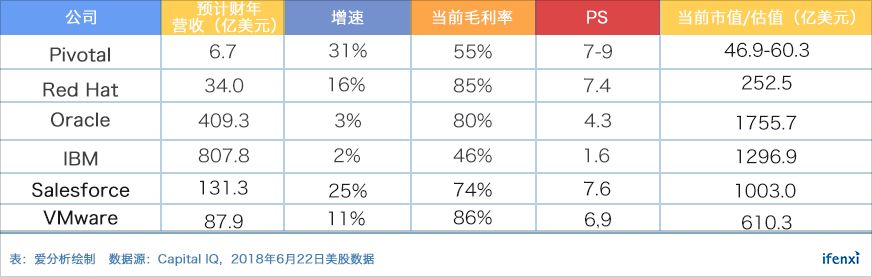 2018年4月20日,Pivotal在纽交所正式上市,目前市值已超过60亿美元。Pivotal打造了“产品+服务”的完整企业转型方法论,在多个开源社区拥有强大影响力,并通过合作伙伴生态触及更多客户,实现收入的持续增长,值得我国PaaS创业公司学习借鉴。