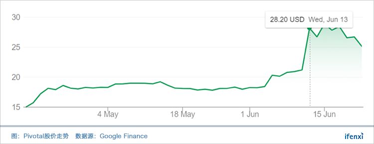 2018年4月20日,Pivotal于纽约证券交易所上市。截至2018年6月22日收盘,股价较IPO发行价累计上涨67.7%,市值达到64.7亿美元,Pivotal用业绩赢得了资本市场的认可。
