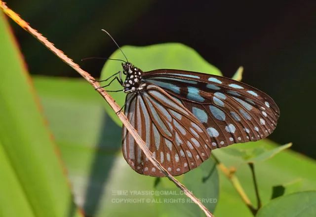 斑蝶也是日常小伙伴之一。对比了半天,觉得特征最符合的是拟旖斑蝶,又名琉球青斑蝶。拟旖斑蝶翅膀上有好看的蓝色斑点,头胸部有白色斑点,在(欧气的)明信片里,连脸上的斑点都有刻画,很细致。