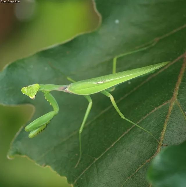广斧螳也是日本和中国都很常见的螳螂之一,体型中到大型,因为肚子很大很宽,又称为广腹螳螂。广斧螳通常是绿色的,也有褐色、棕色等其他色型。前足就是螳螂科都有的捕捉足,总之明信片画得也是蛮接近实物的。