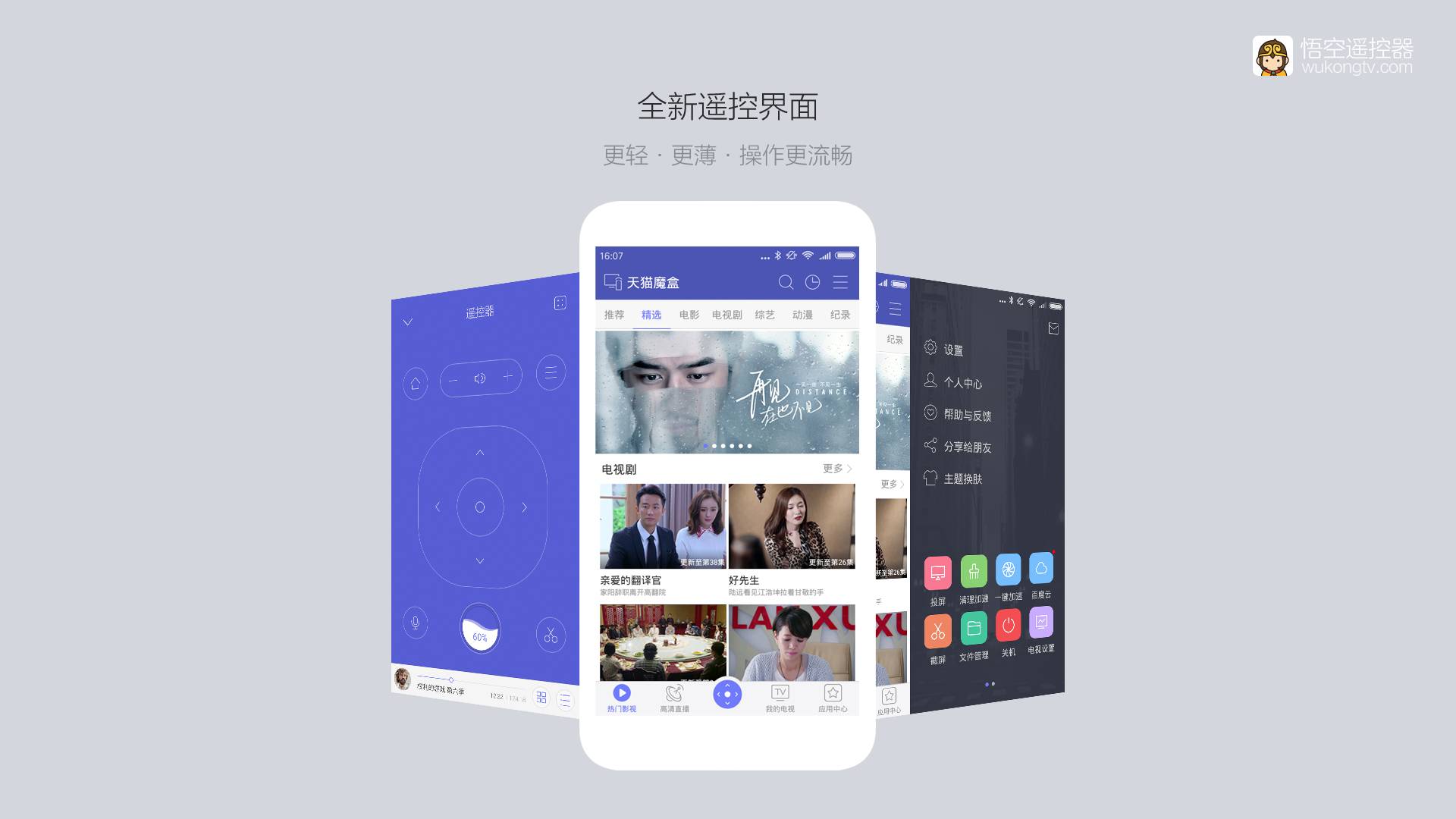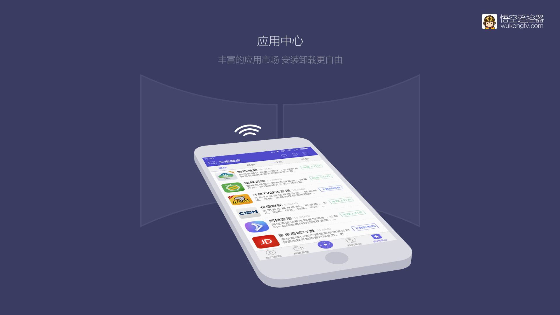 悟空遥控器是一个手机App应用,适配于所有智能手机,同时适配于大多数品牌和型号的智能电视,用户可以通过App与电视的简单适配,获得良好的电视操控体验,并从中获得更丰富的电视内容,因为悟空遥控器除了改善操控体验之外,还提供内容分发及应用管理功能。