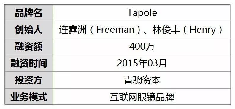 2013年7月,Henry 和 Freeman 拿出200万,创立了互联网眼镜品牌 “Tapole” 。