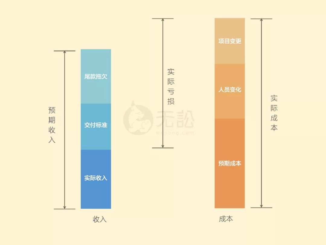 我也曾与一位做软件外包业务的老板探讨过企业成本问题。由于用工成本趋于透明,加之外部竞争激烈,企业的利润相对比较薄,项目控制稍有不慎就会亏钱。例如项目质量不达标需要返工延期,导致内部人员成本增长;或者项目过程中关键人员突然离职,交接不力被迫迟延导致成本增加;因各种原因回不了款导致收入减少等等。