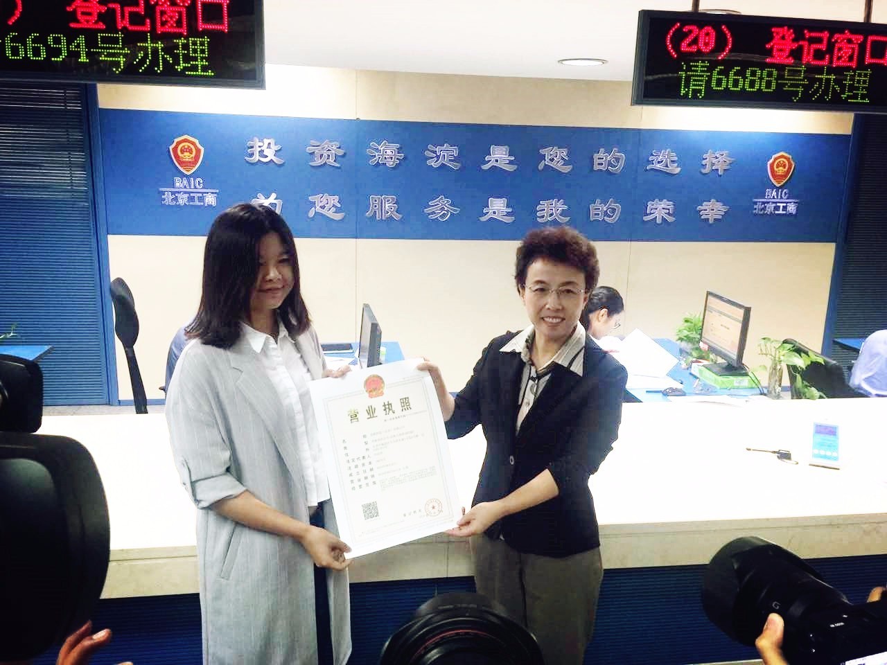 首批“五证合一”营业执照的清辞科技法定代表人,是在清华大学读大三的叶乐欣。她介绍,自己是上周五来到工商局提交的所有材料,今天就直接拿到营业执照,只用了2个工作日的时间。