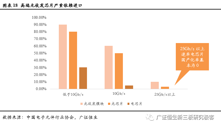 (1)高端光通信芯片的国产化率低,制约光通信器件产业发展
