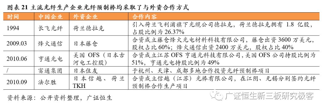 由于引进外资掌握核心技术,大量利润被国外厂商攫取。我国当前主要光纤光缆厂商多以合资公司,或引入外资战略投资的形式获得光纤预制棒核心技术,实现光纤预制棒技术的突破,自主研发能力有待加强。