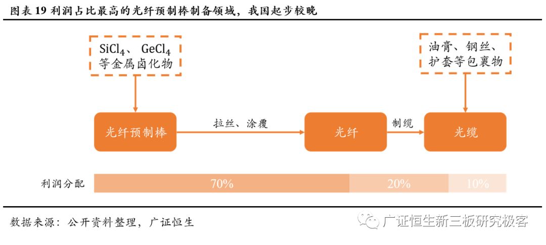 (3)高端光纤技术不足,光纤预制棒制备材料及光纤涂覆材料等关键原材料受限,大量利润被国外企业获得