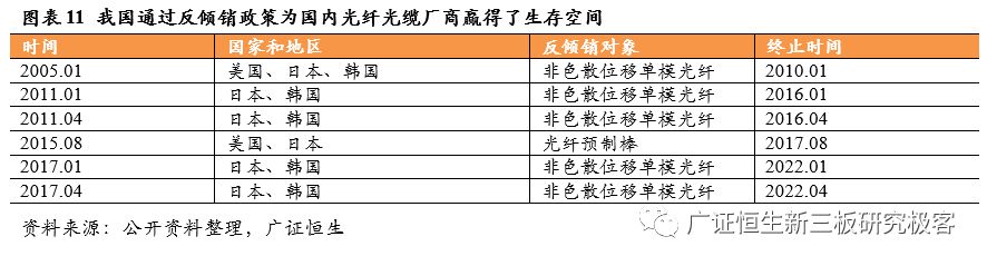 反倾销政策为国内产业链发展争取了时间。进入21世纪后,我国多次利用反倾销武器争取市场公平竞争的权利,为国内光纤光缆厂商赢得了生存空间。