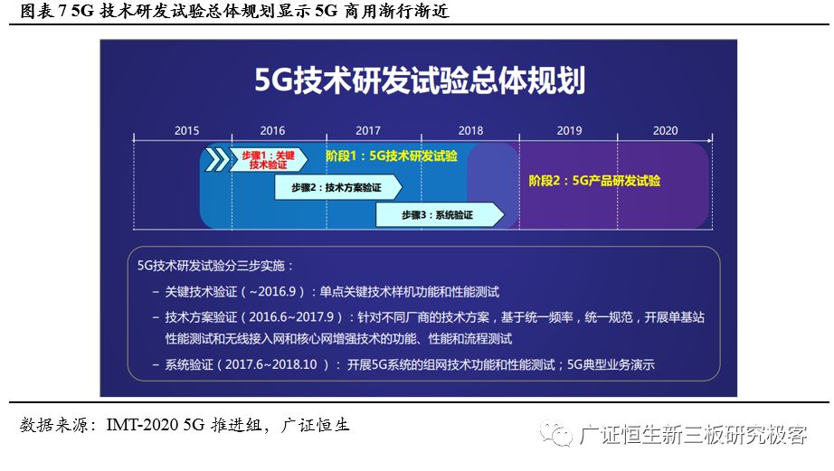 系统验证阶段是5G实现商用之前的关键一步,也是5G商用初期大规模网络建设的前兆。信通院《5G经济社会影响白皮书》中提到,在5G商用初期,运营商将大规模开展网络建设,到2020年,网络和终端设备投入可能高达4500亿元。