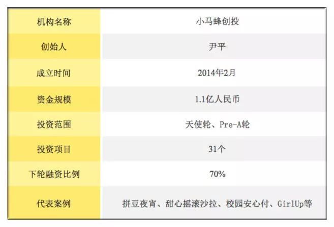 在这套投资方法的指导下,小马蜂创投已投资31个项目,其中22个跑进下一轮,每个项目的投资决策周期大约在2周左右。