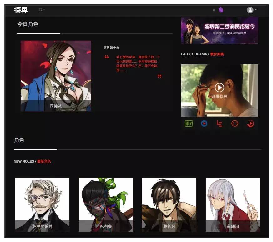 ◆ 将界众创平台角色展示