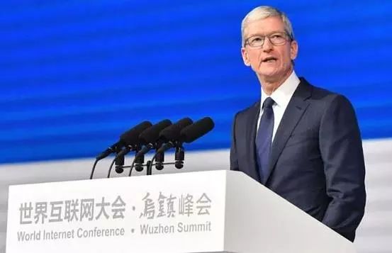 图:苹果CEO库克在世界互联网大会·乌镇峰会上演讲